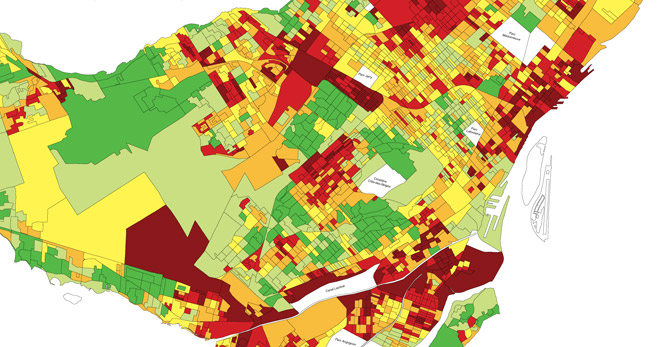 These maps show the spatial distribution of one or more specific data themes, such as poverty, density of immigrant populations, housing construction characteristics, water quality, predominant crops cultivated, etc. They are typically based on census data and can be used for exploratory spatial data analysis, confirming hypotheses and synthesizing spatial data by revealing patterns and relationships. They can also support development of research and survey questions.