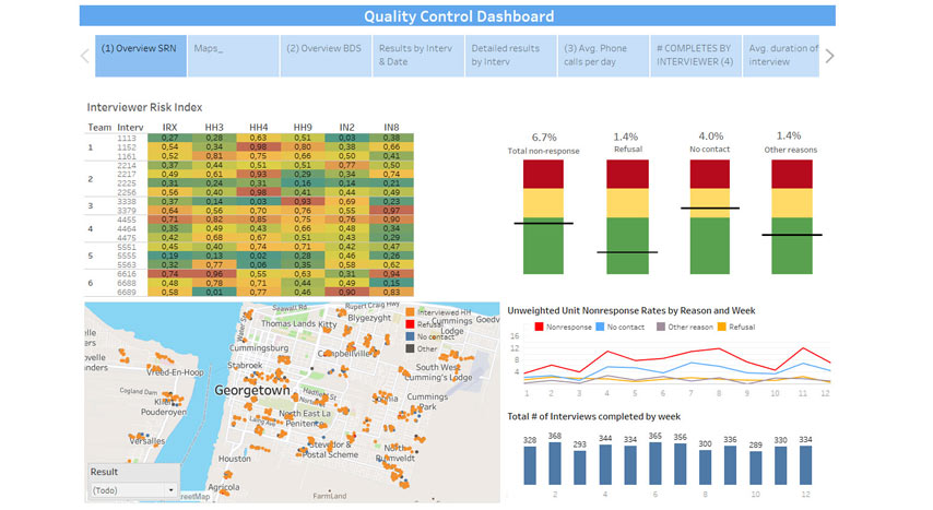 The aggregate quality indicators are based on data and paradata and are visualized within an online interactive dashboard. This allows the management team to identify various types of nonsampling errors and interviewer effects speedily and to act accordingly. The online dashboard is updated daily and is accessible to the client on an ongoing basis over the entire field period.